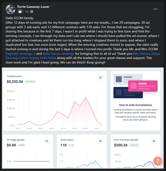 You see, Mr. & Mrs. eCom are the founders of eCom Family Academy, a private educational community that wins together, fails (& learns) together, grows together, and basically does every other part of the journey together in order to propel members’ e-commerce businesses forward.